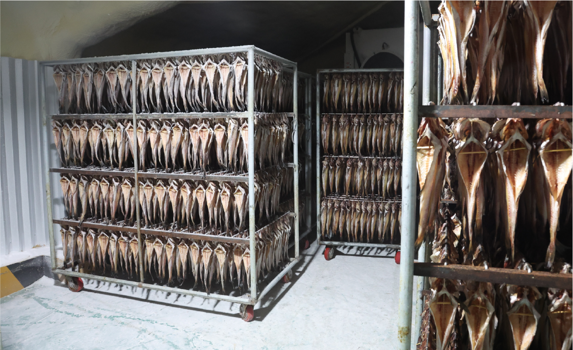 건조실에서 건조된 명태들을 급속냉동 시켜줍니다