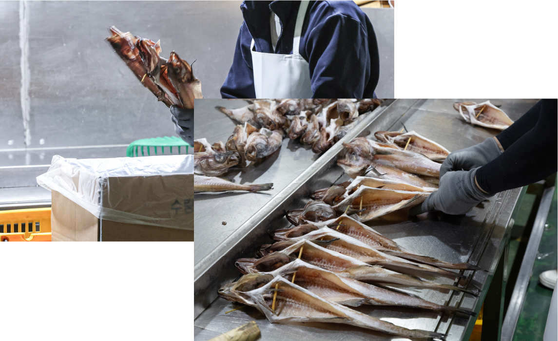 신선한 명태만을 선별해 명태의 내장과 아가미를 제거합니다